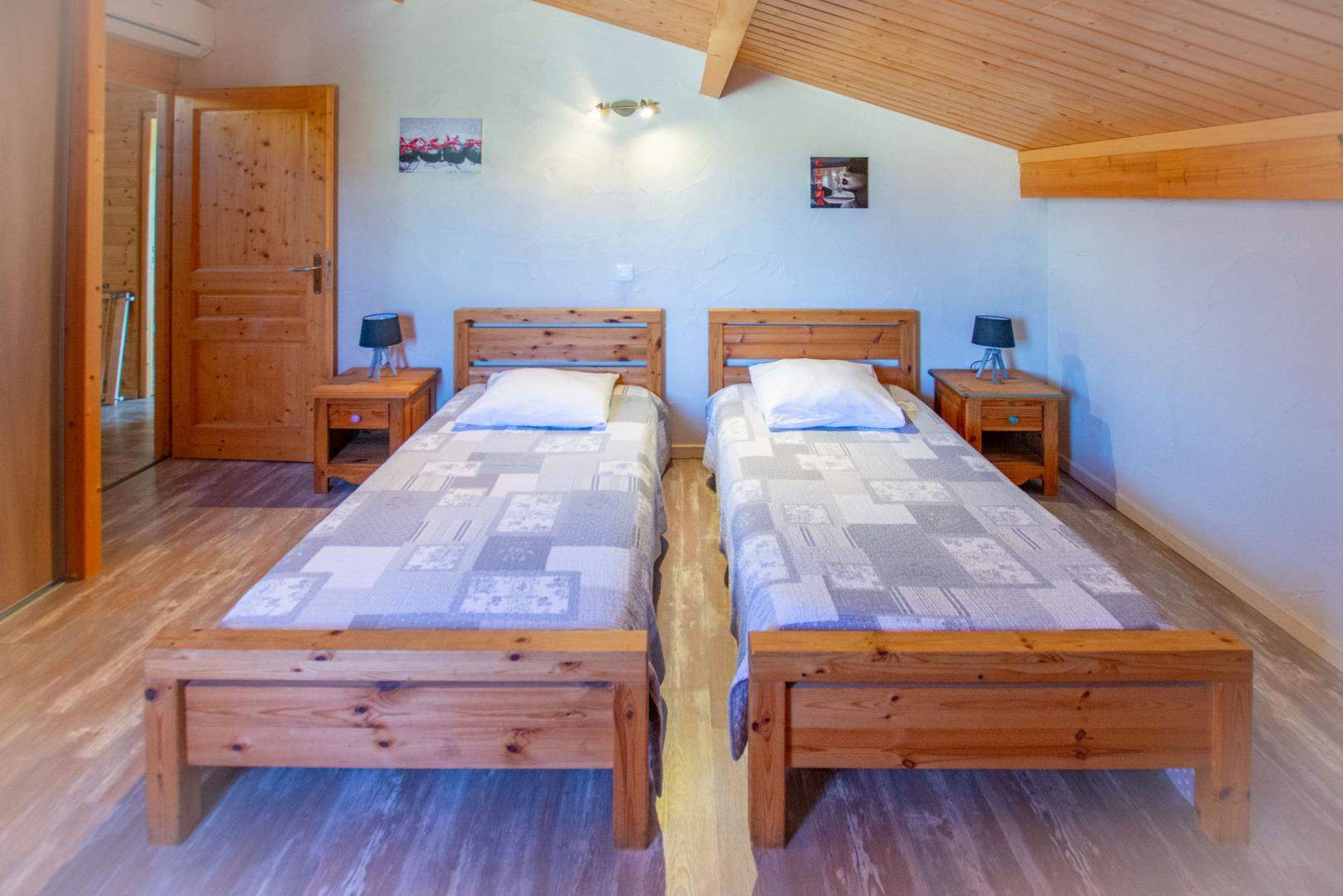 Each room has a flat-screen TV, a private bathroom, and WC. A sofa bed can accommodate two additional guests. The maximum capacity across the combined cottages is 15 people.